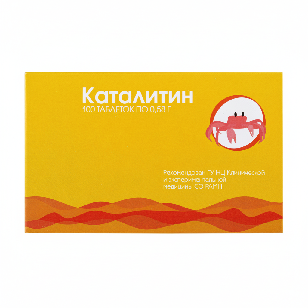 Состав: хитозан, экстракты столбиков с рыльцами кукурузы, колеус форсколии, плодов шиповника, кожуры померанца. Вспомогательные вещества: сорбит, лактоза. Для изготовления Каталитина используется хитозан с высокой степенью деацетилирования (не менее 92 %), изготавливаемый из хитина панцирей камчатского краба.